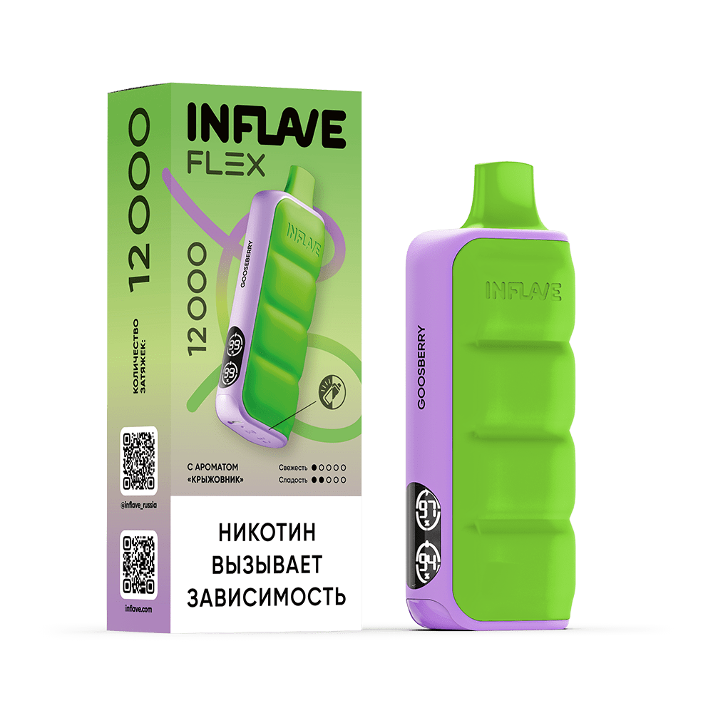 | Количество затяжек, шт12000 | Крепость, %2 | ЛинейкаINFLAVE FLEX 12000 |