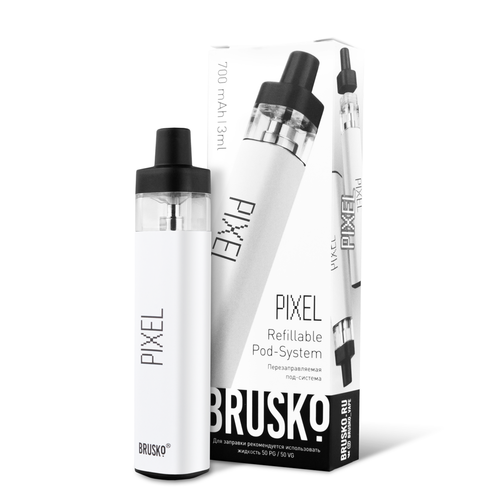 Перезаправляемая Под-Система Бруско Пиксель (Brusko Pixel) 700 mah, Белый - купить в Агрызе